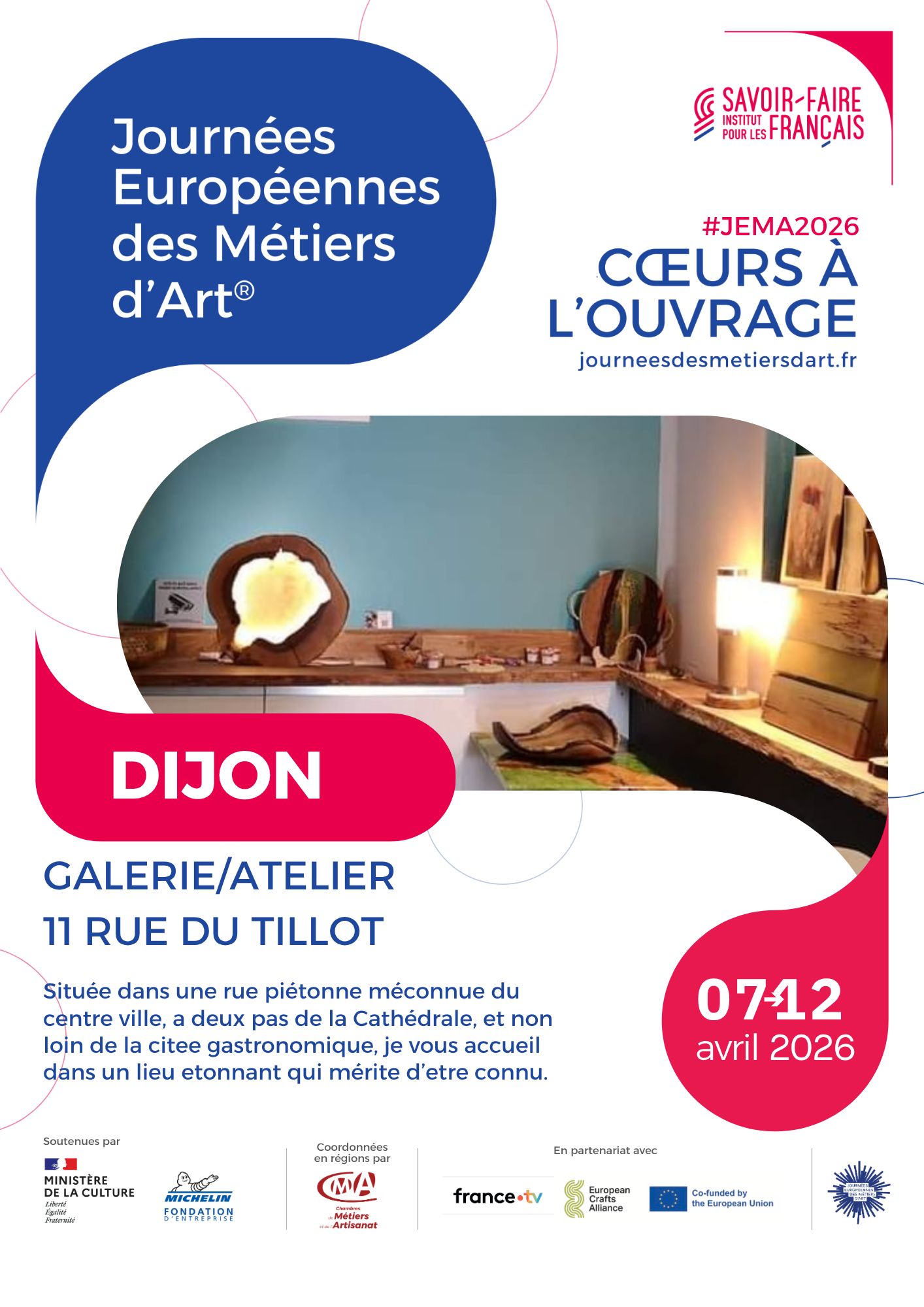 A Dijon, la chambre des métiers organise une exposition spécifique que vous pourrez découvrir dans la Salle des Etats du palais des Ducs de Bourgogne à Dijon le week-end du 11 et 12 avril, de 10h à 18h. Plusieurs adhérents participent et d’autres artisans de la région, une trentaine en tout seront présents.